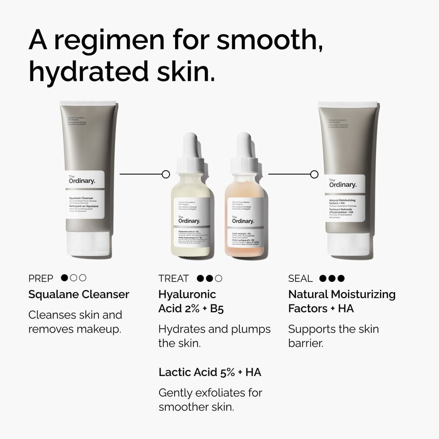 Lactic Acid 5% + HA is a mild alpha hydroxy acid solution that offers gentle yet effective exfoliation targeted at the skin’s surface. It is supported with purified Tasmanian pepperberry extract, which is a known anti-irritant. This water-based serum is ideal for dry and sensitive skin.
